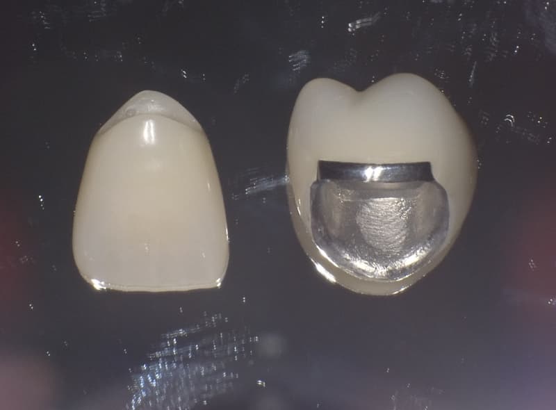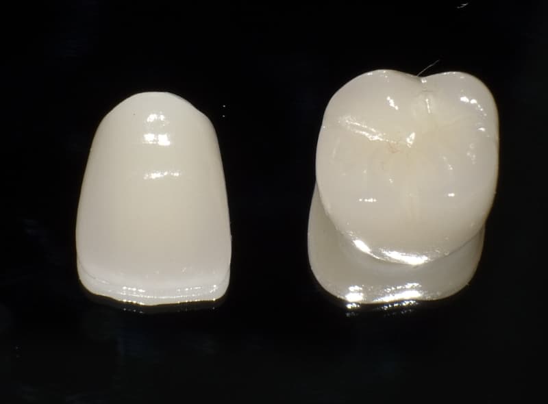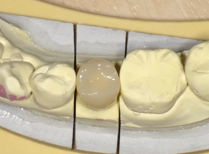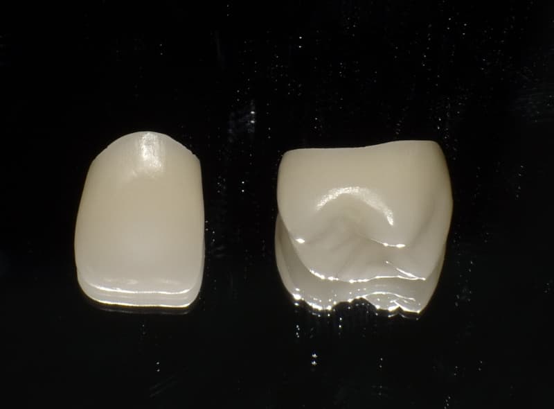 クラウン:ジルコニア上に様々な色調のセラミックを盛り合わせていきます。天然歯と比べても違和感のない色調に近づきます。